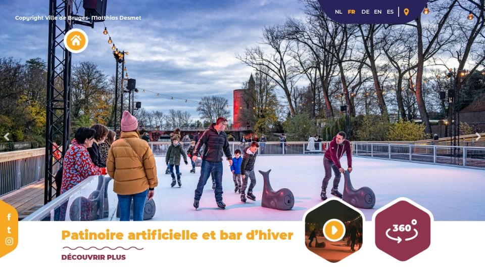 Patinoire artificielle et bar d’hiver DÉCOUVRIR PLUS Ontdek onze Social Media NL FR DE EN ES Change language Ga naarmap Copyright Ville de Bruges- Matthias Desmet NL FR DE EN ES Patinoire artificielle et bar d’hiver DÉCOUVRIR PLUS Copyright Ville de Bruges- Matthias Desmet